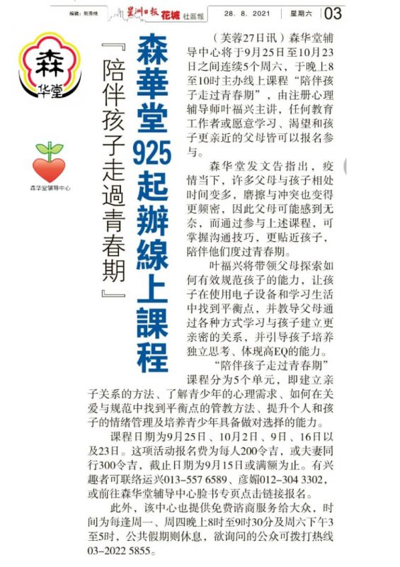 - 马来西亚注册认证心理辅导师;毕业于博特拉大学心理辅导硕士