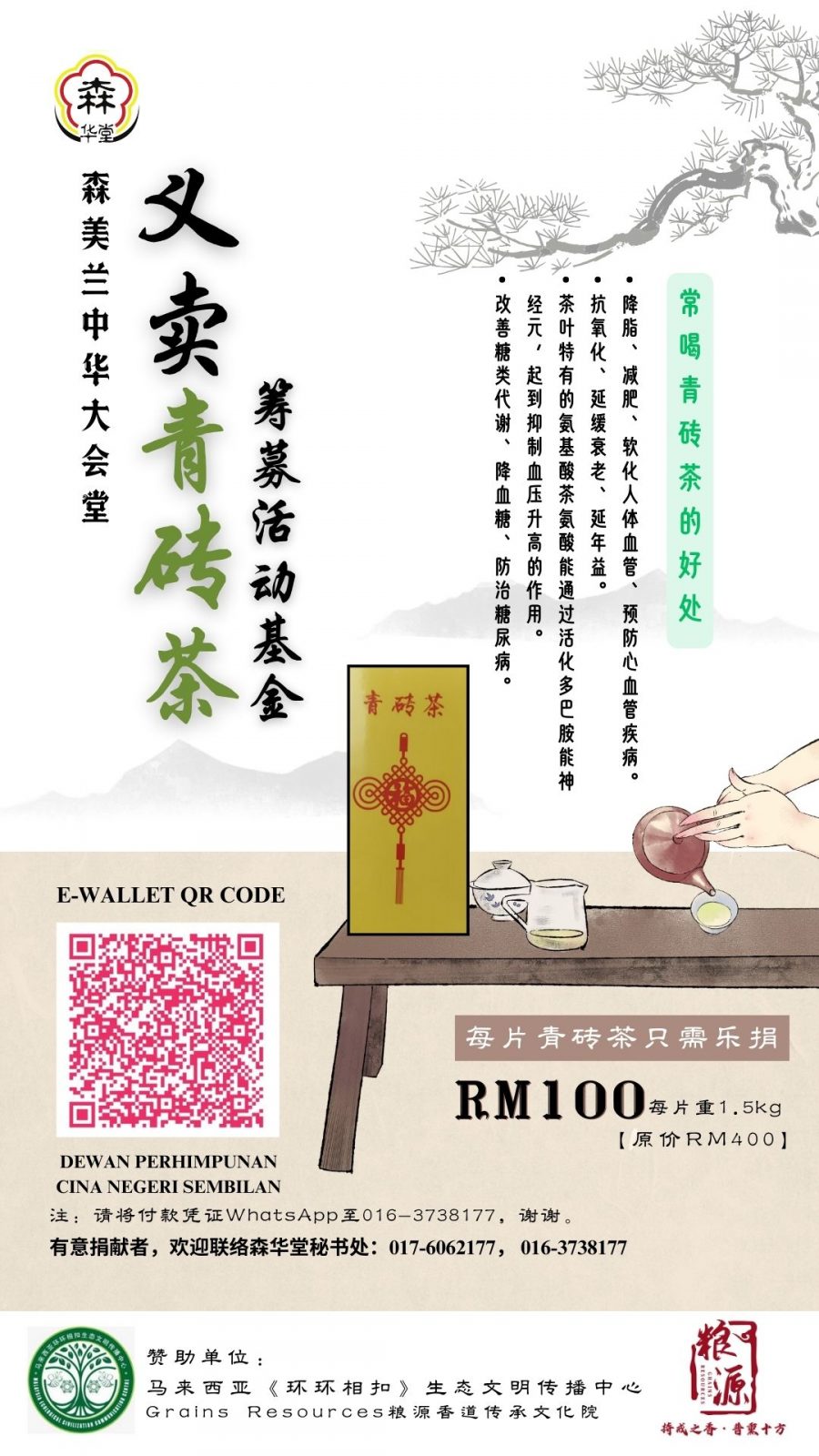 森美兰中华大会堂即日起义卖青砖茶以筹募活动基金,欢迎各界热心人士慷慨捐献RM100,即可获得一片重1.5kg的 […]