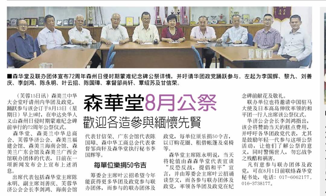 森华堂8月公祭,欢迎各造参与缅怀先贤(16-7-2017)