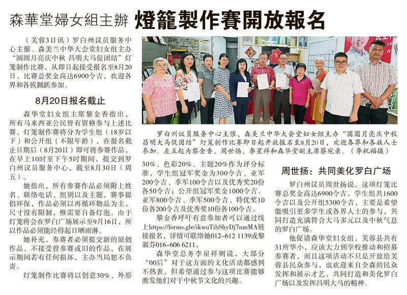 该比赛公开给大马公民参加,并分为学生组(18岁以下)及公开组(不限年龄),报名费免费,报名截止日期为8月20日,报名链接 https://forms.gle/ikwuTibShyDj7nmMA